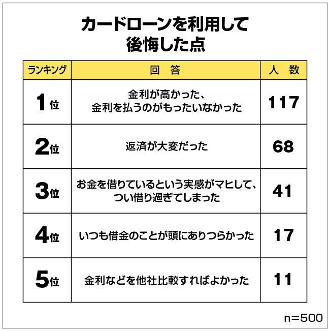 保険相談サービスを提供する保険マンモス株式会社はこの度、男女500人を対象に「カードローンに関するアンケート調査」を実施いたしました。