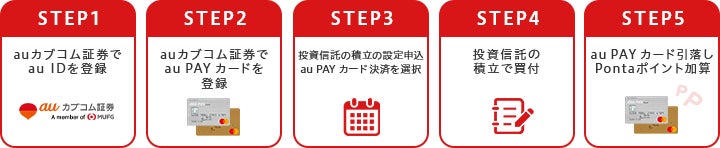 auカブコム証券、auフィナンシャルサービス、KDDIは2022年3月28日から、au PAY カード決済で投資信託の積立を行えるようにします。このau PAY カード決済で投資信託の積立をされた場合は、毎月の買付金額の1%をPontaポイントで還元します。