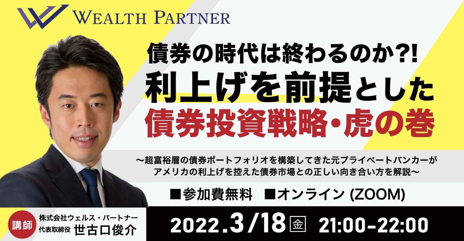 【3月18日(金)開催 オンラインセミナー】「債券の時代は終わるのか!?利上げを前提とした債券投資戦略・虎の巻 」を開催いたします!