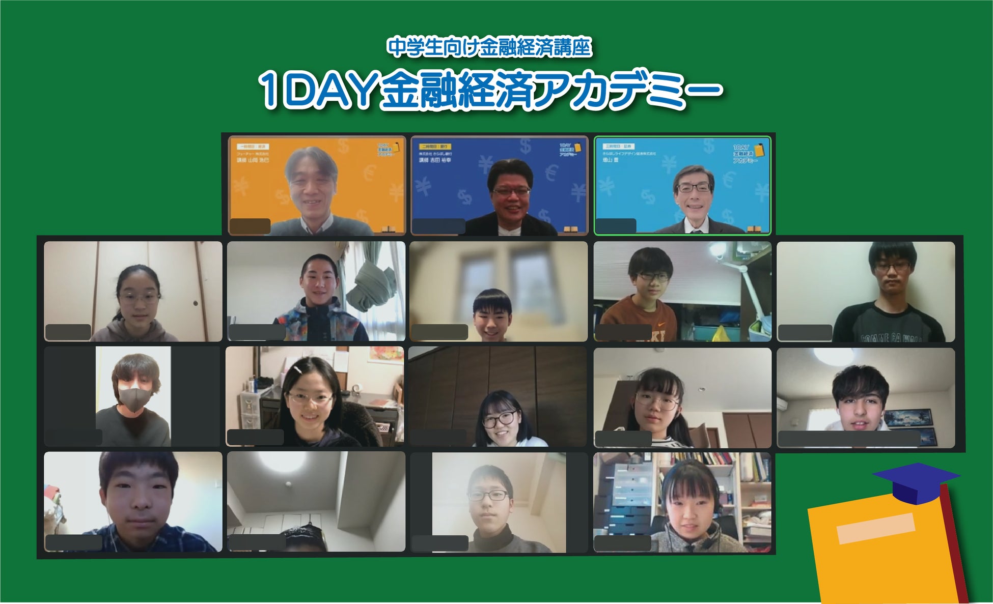 当日は、全国各地から一般公募にて集まった中学生18名が参加し、「経済」「銀行」「証券」をテーマに講義を行いました。最初の「経済」では、お金の歴史から世界経済の変化について、次の「銀行」では銀行の三大業務といわれる「預金」「融資」「為替」について、最後の「証券」では株と証券会社の役割などについて学びました。参加者からは「日本がこれから直面する経済の課題や他国の新しい銀行の形態などとても興味深い内容でした」「銀行の役目や為替、融資について詳しく聞くことができ、銀行の新たな可能性について考えるきっかけになりました」「株価の決定プロセスからなぜ証券会社が必要なのかわかりました」などの声が聞かれました。また、講師陣からは、「世の中の様々なことが金融につながっているので、これからも関心を持ってほしい」「わからないことがあったら、まずは全体の流れを掴んだあと細部を理解していくことが大事」「今日のプログラムをきっかけに、疑問を持つ力を大切にしてほしい」といったエールが送られました。