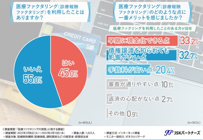 そこで今回、医療報酬系ファンドを運営するJSKパートナーズ株式会社(https://jskpartners.jp/)は、医療関係機関(医療施設、調剤薬局など)の経営者・経理担当者を対象に、「医療ファクタリングの実態」に関する調査を実施しました。