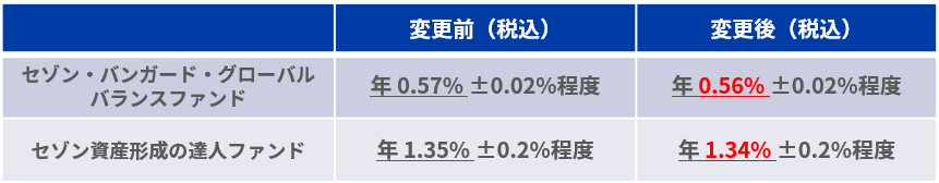 セゾン投信株式会社(代表取締役会長CEO:中野晴啓、本社:東京都豊島区、以下「セゾン投信」)は、運用、販売する投資信託「セゾン・バンガード・グローバルバランスファンド」「セゾン資産形成の達人ファンド」の運用管理費用(信託報酬)を2022年3月11日より変更することをお知らせいたします。