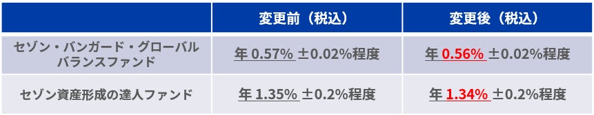 セゾン投信株式会社(代表取締役会長CEO:中野晴啓、本社:東京都豊島区、以下「セゾン投信」)は、運用、販売する投資信託「セゾン・バンガード・グローバルバランスファンド」「セゾン資産形成の達人ファンド」の運用管理費用(信託報酬)を2022年3月11日より変更することをお知らせいたします。