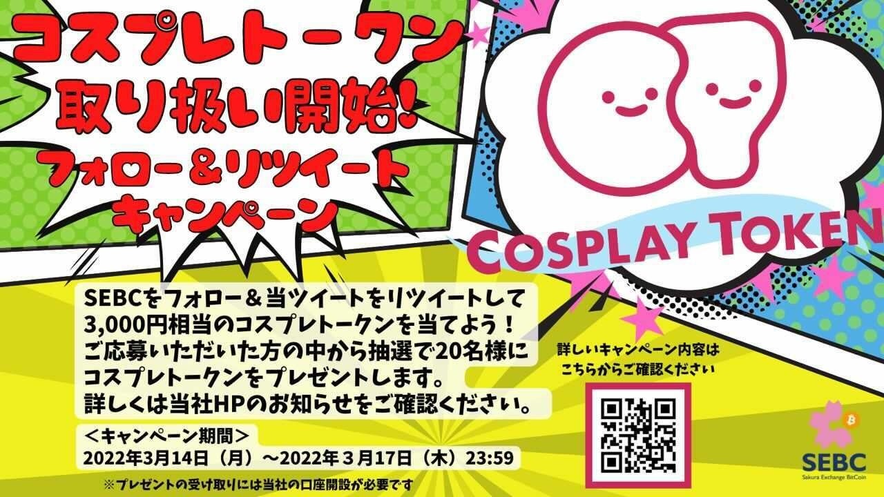 仮想通貨『Cosplay Tokenコスプレトークン』の上場を記念して、サクラエクスチェンジビットコイン社にてフォロー&リツイートキャンペーンを実施