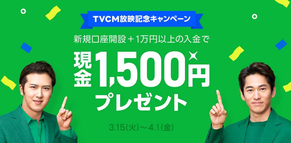 対象者 :キャンペーン期間中に新規口座開設および1万円の入金が完了したユーザー