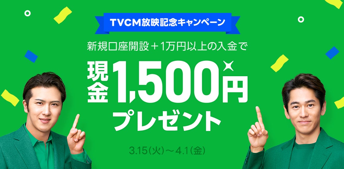 LINEの暗号資産事業およびブロックチェーン関連事業を展開するLVC株式会社(所在地:東京都品川区、代表取締役社長CEO:林 仁奎、以下「LVC」)は、暗号資産取引サービス「LINE BITMAX」において、初のTVCM放映を記念して、対象期間内に新規で口座開設後、1万円以上の入金で現金1,500円をプレゼントするキャンペーンを3月15日(火)より開催することをお知らせいたします。