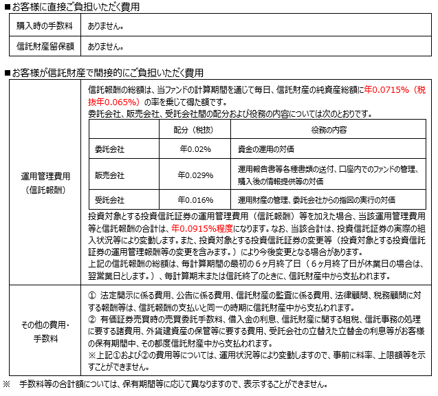 【PayPay投信 米国株式インデックス お客様にご負担いただく主な費用】