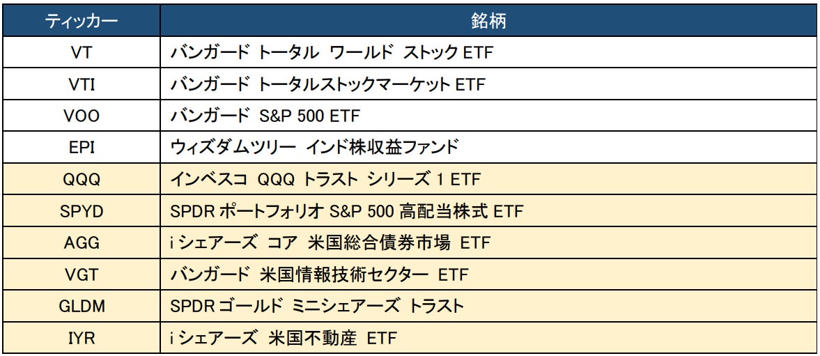 ✓中長期の資産形成に適した米国ETF10銘柄の買付手数料が無料