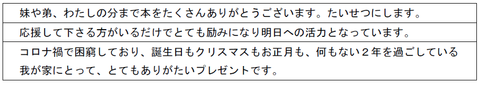 3.プレゼントを受け取った保護者・子どもたちの声