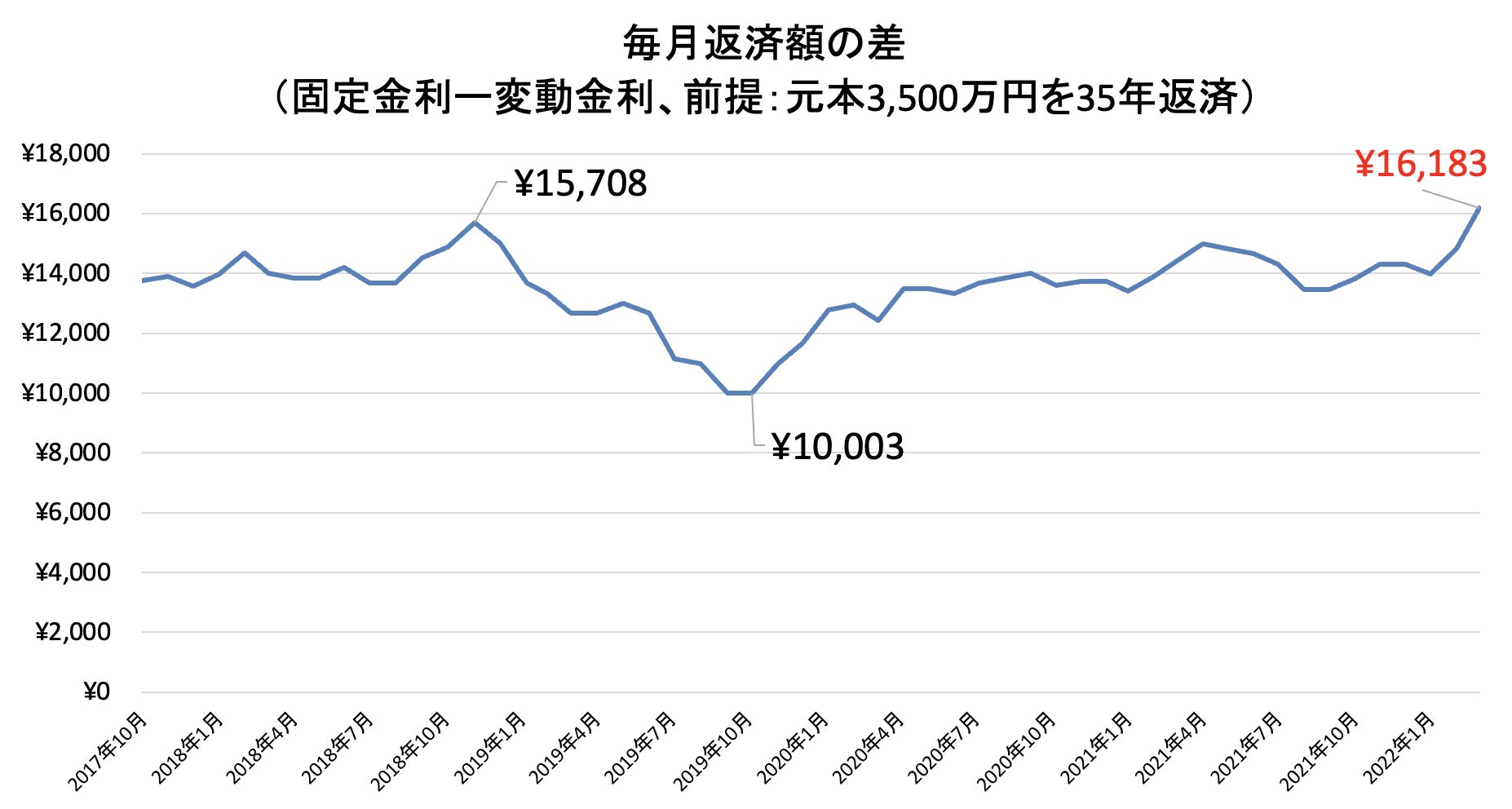 その結果、毎月返済額の差では1.6万円※にもなり、年間20万円・35年間では700万円もの差に。「金利上昇が気になるので固定金利も検討しているけど、返済額が増えるのはちょっと嫌だなぁ・・・」と思われているユーザーも多いのではないでしょうか。