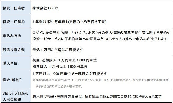 ■「SBIラップ」第1弾 SBI証券×FOLIOの投資一任サービスの主な特徴