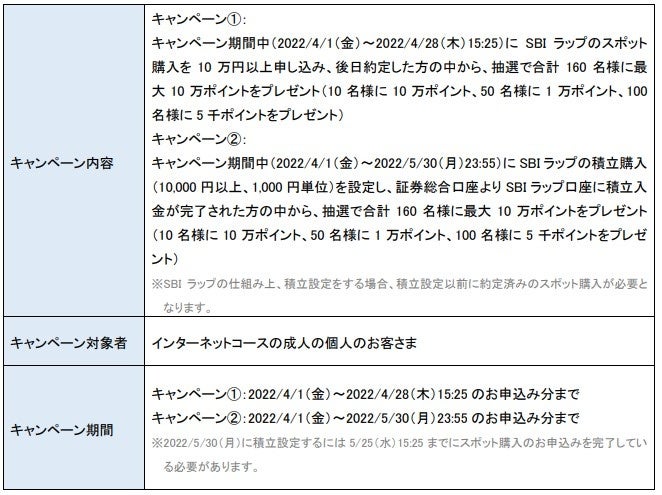 =最大20万ポイントが当たるSBIラップスタート記念キャンペーン!=