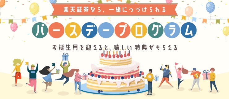 本日、設立23周年を迎えた楽天証券株式会社(本社:東京都港区、代表取締役社長:楠 雄治、以下「楽天証券」)は、2022年4月より、お客様の誕生月にスペシャル特典を進呈する「バースデープログラム」を開始することをお知らせします。