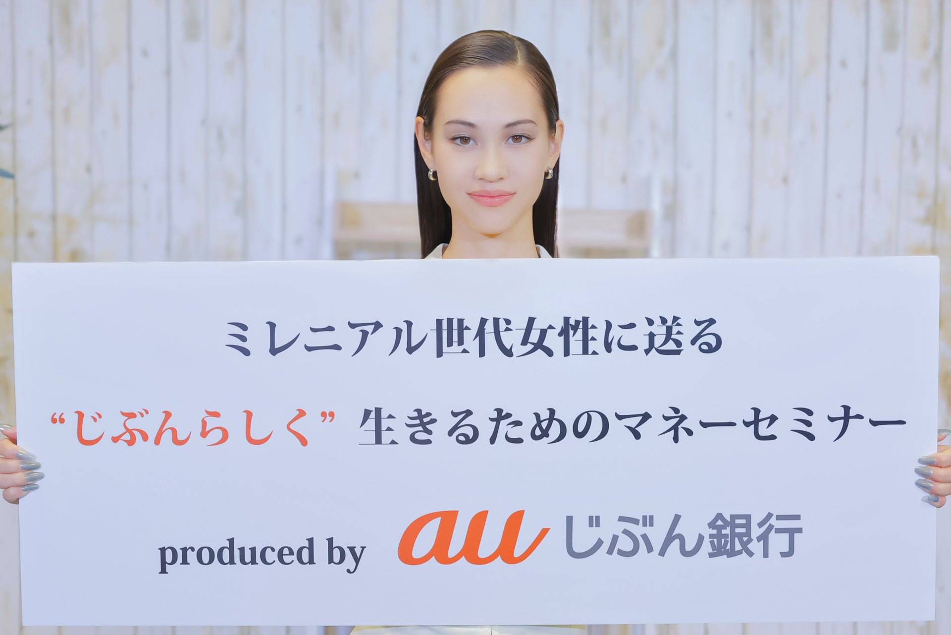 第一部では、ミレニアル世代の代表としてauじぶん銀行のイメージキャラクター・水原希子さんと、お金の専門家・ファイナンシャルプランナーの塚越菜々子さんにご登壇いただき、「じぶんらしいお金の使い方を考える」トークセッションを開催。第二部では、引き続きファイナンシャルプランナーの塚越さんにご登壇いただき、「じぶんらしいお金の使い方を学ぶ」と題し、実践編としてお金への向き合い方や具体的な資産形成の考え方をレクチャーしていただきました。