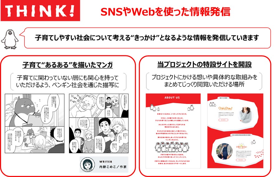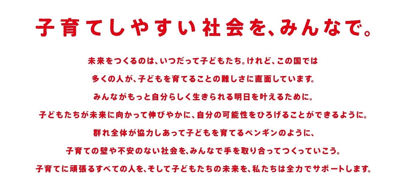 群れ全体で協力して子どもを育てる習慣のある“ペンギン”をモチーフに、「みんなで子どもを育てる社会」の実現を目指すプロジェクトです。