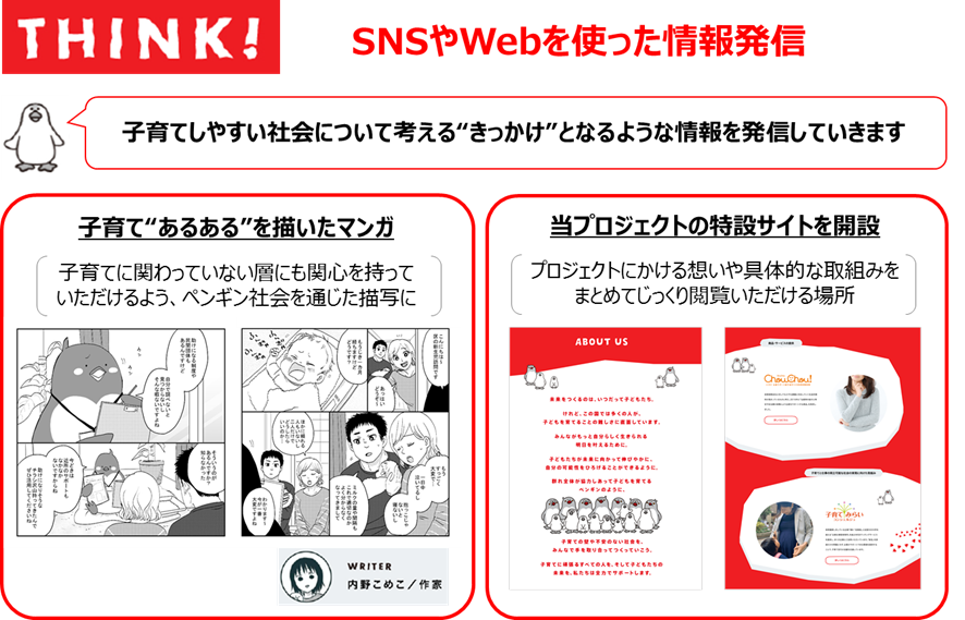 群れ全体で協力して子どもを育てる習慣のある“ペンギン”をモチーフに、「みんなで子どもを育てる社会」の実現を目指すプロジェクトです。