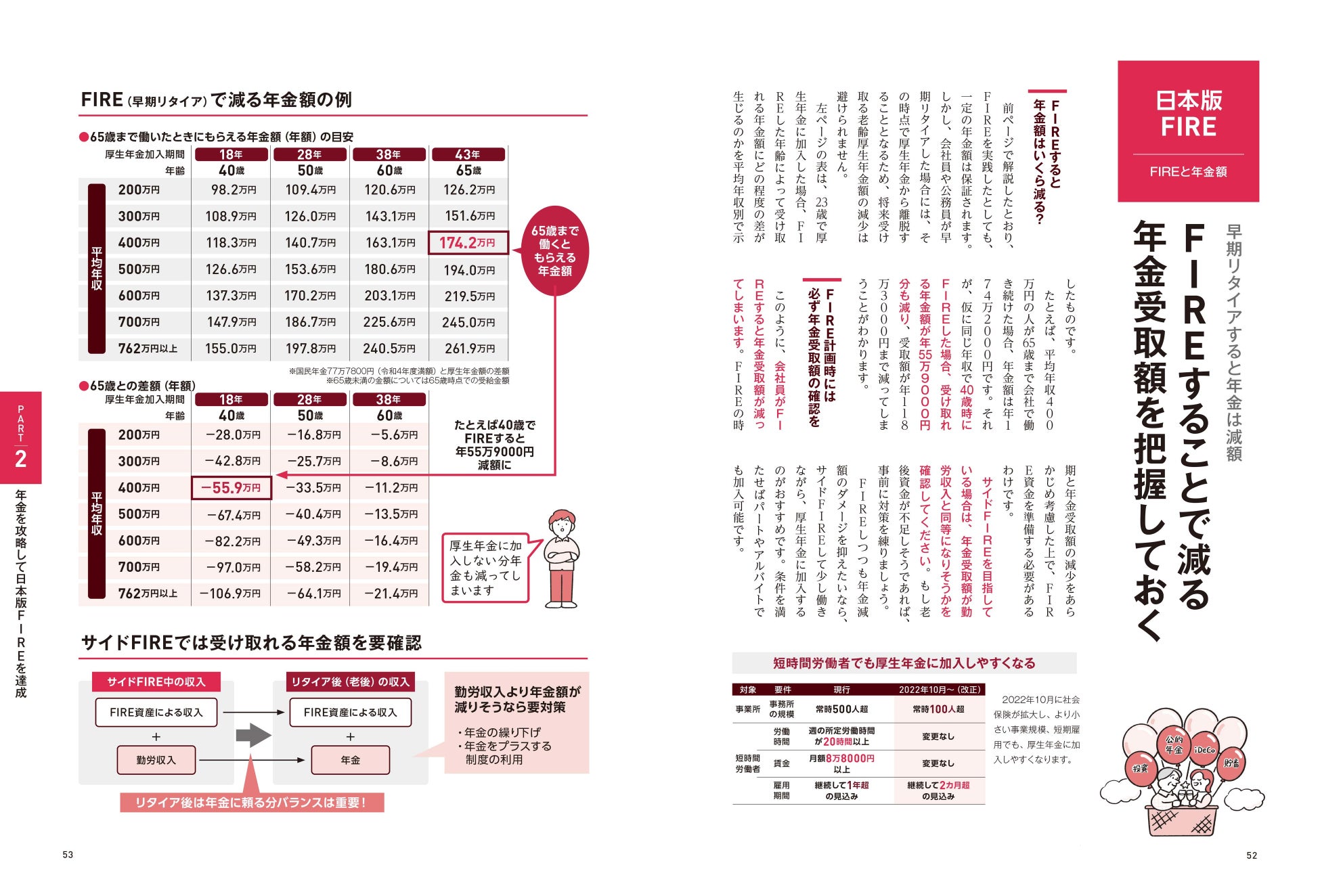 会社員が加入している厚生年金は、FIREして仕事を辞めると受け取れる年金額が減額されます。老後の大切な収入源となる年金をどう確保するか、という日本ならではのFIRE戦略を丁寧に解説しています。