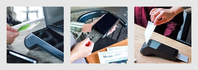 A8はレシートプリンターが搭載されています。別途レシートプリンターを用意する必要がないため、狭いレジスペースでの決済、デリバリー先やイベントでの決済に便利です。