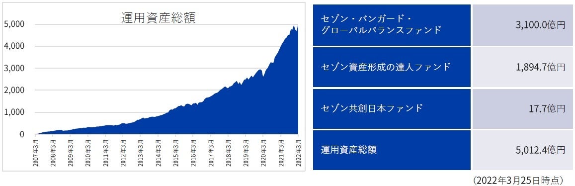 2022年3月25日に運用する3ファンドの運用資産総額が5,000億円を突破したことをご報告いたします。