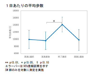スポーツワーケーション実施組(約3週間のうち、6日間スポーツワーケーション実施)のみ計測。