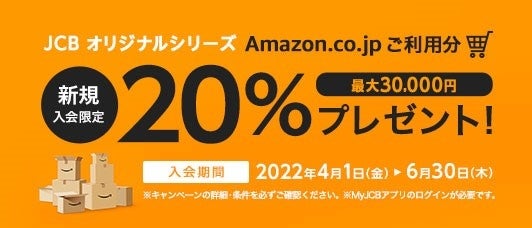 JCBオリジナルシリーズは、Amazon.co.jpでのお買い物で常にOki Dokiポイントが3倍~4倍となるおトクなカードです。本キャンペーン実施中に新規入会後、MyJCBアプリにログインし、Amazon.co.jpをご利用いただくと、通常のポイント獲得に加え、ご利用分の20%(最大30,000円)がキャッシュバックされます。