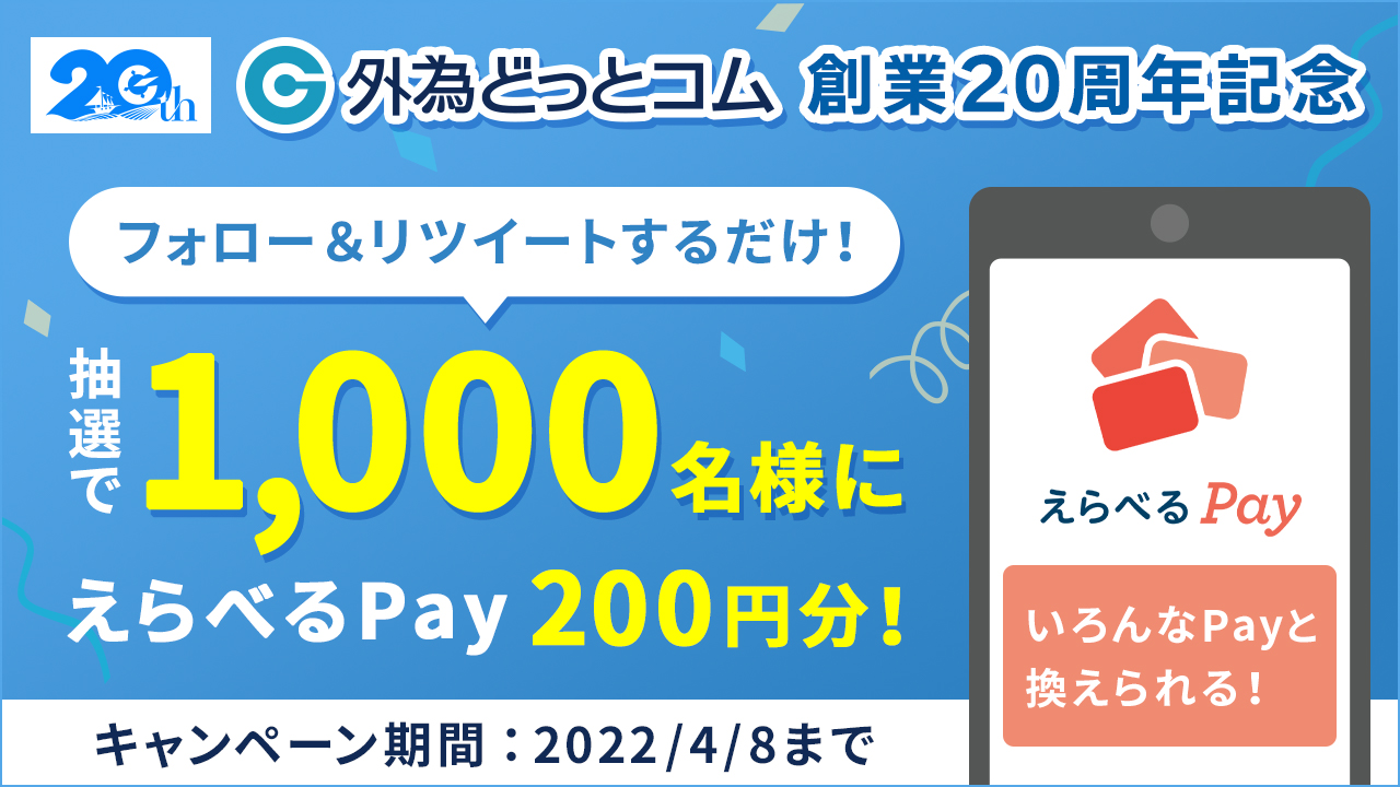 株式会社外為どっとコム(以下「外為どっとコム」、本社:東京都港区、代表取締役社長:竹内 淳)は、2022年4月1日、創業20周年を迎えました。これもひとえにお客様からの多大なるご支援あってのものであり心より感謝申し上げます。外為どっとコムでは2022年4月1日からの1年間を「20周年記念イヤー」として、創業20周年記念サイトの公開、およびお客様への感謝の気持ちを込めたキャンペーンを開始いたします。