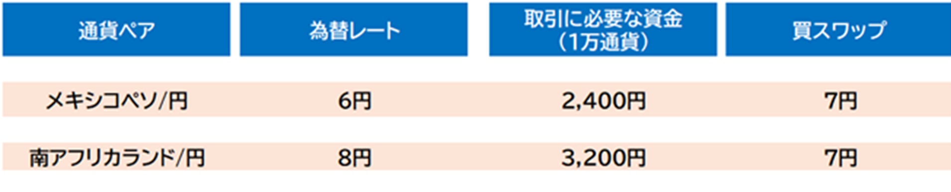 南アフリカランド/円、メキシコペソ/円は、少ない資金で始められるため、資金効率が良く、ほかの通貨と同様に1,000通貨単位からお取引いただけます。