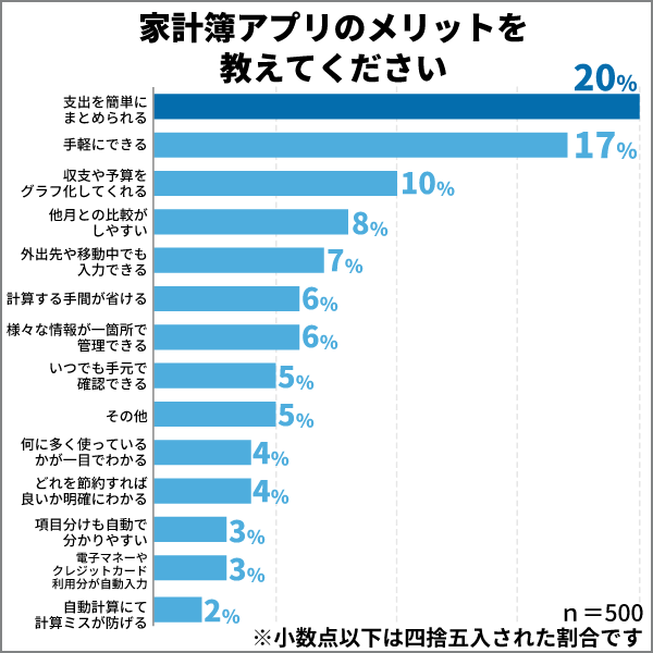 また、手書きの家計簿との大きな違いとして「外出先や移動中でも入力できたり、いつでも収支を確認できる」という声も多くありました。