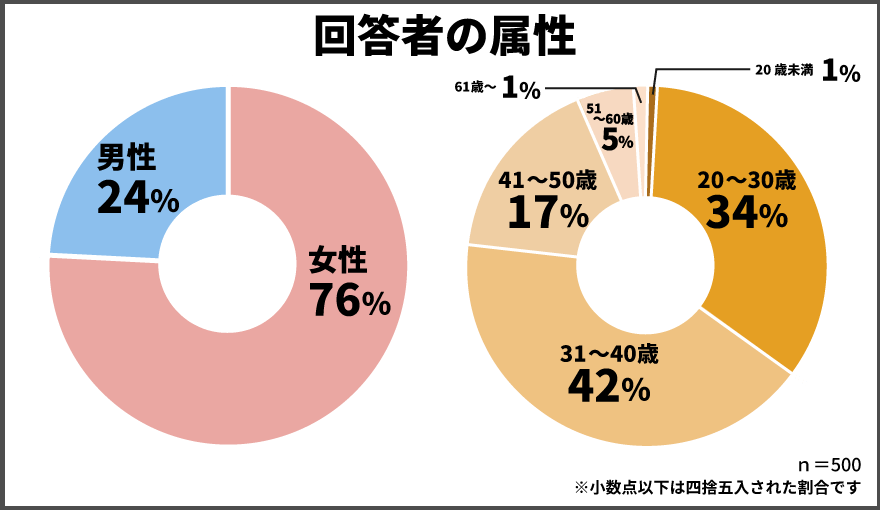 男性:24%、女性:76%と、女性の方が高い比率の回答となりました。年齢は31~40歳が42%と最も多い結果に。