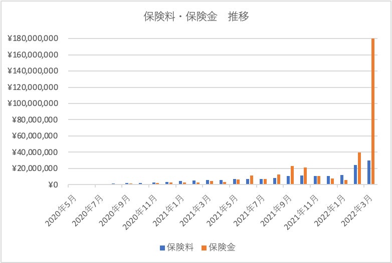 資料:コロナ助け合い保険 保険料収入と保険金支出の推移(2020/5/1〜2022/3/31)