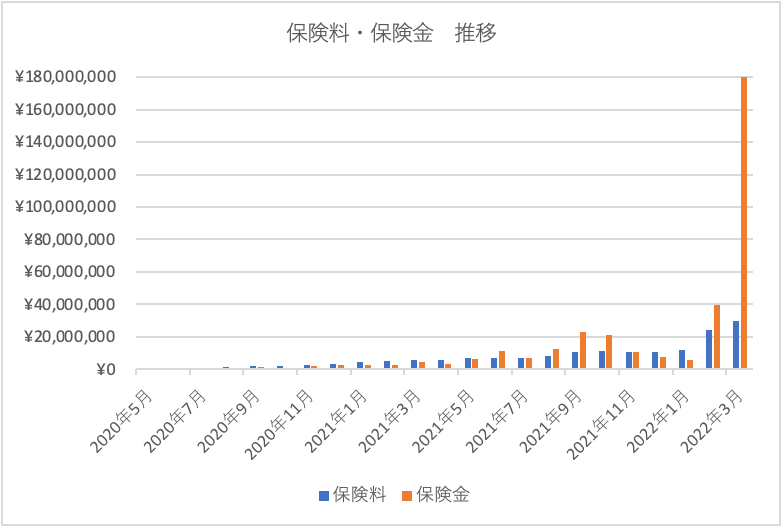 資料:コロナ助け合い保険 保険料収入と保険金支出の推移(2020/5/1〜2022/3/31)
