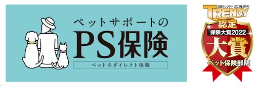 ペットサポートの「PS保険」は、保険料と補償内容のバランスの良さから、『日経トレンディ』2022年5月号「保険大賞2022」の「ペット保険」分野におきまして、調査対象ペット保険会社8社の中で、最もメリットが大きいと判断いただき、「ペット保険部門大賞」を受賞いたしました。