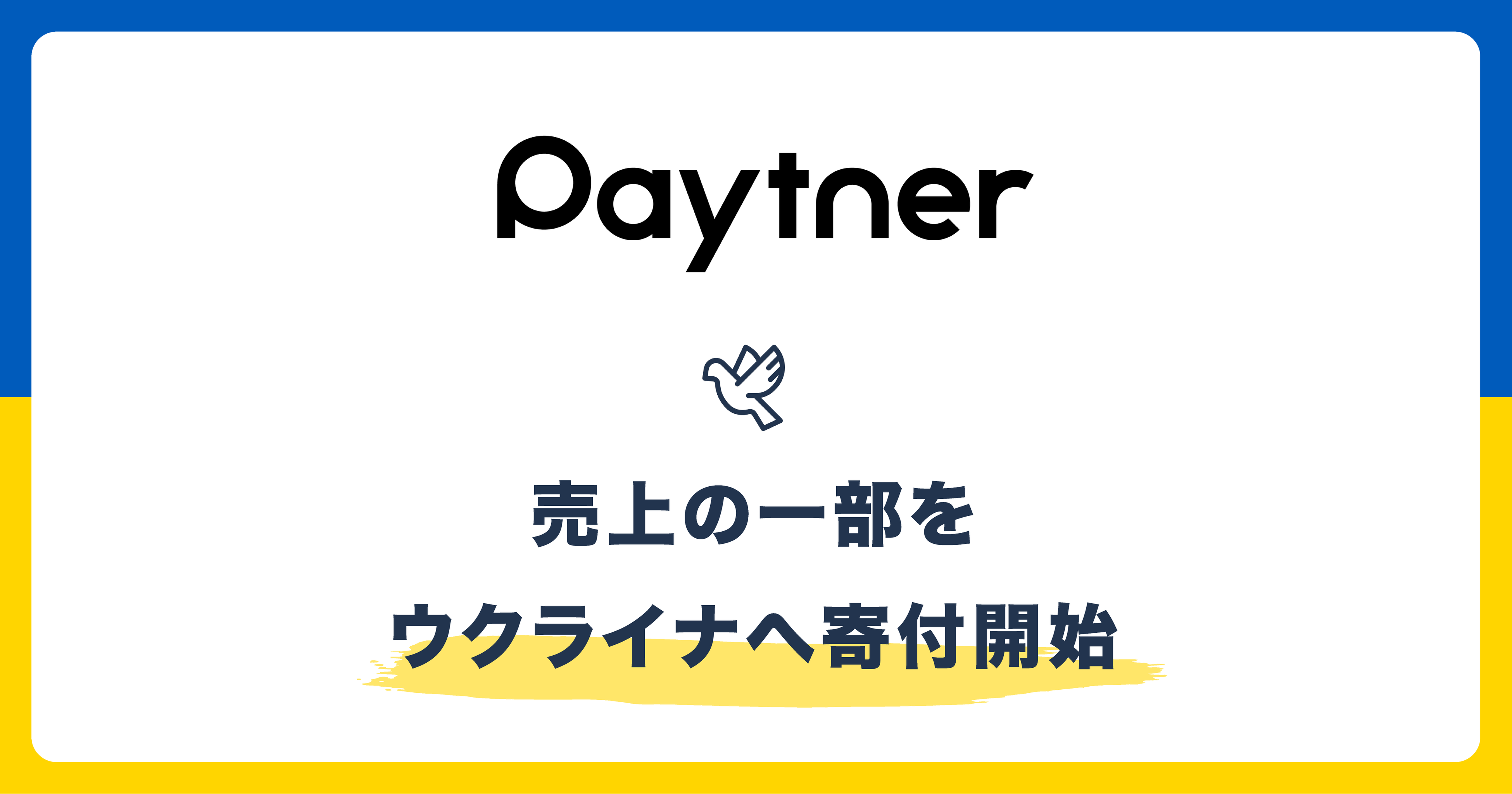 このような中、ペイトナー(旧yup)は、ウクライナへの人道支援を目的に「ペイトナー ファクタリング(旧先払い)」の売上の一部を寄付することにいたしました。