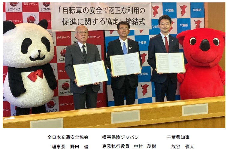 損害保険ジャパン株式会社(取締役社長:白川 儀一、以下「損保ジャパン」)は、千葉県(知事:熊谷 俊人)および一般財団法人全日本交通安全協会(会長:川村 隆、以下「全日本交通安全協会」)と『自転車の安全で適正な利用の促進に関する協定』を本日締結したことをお知らせします。