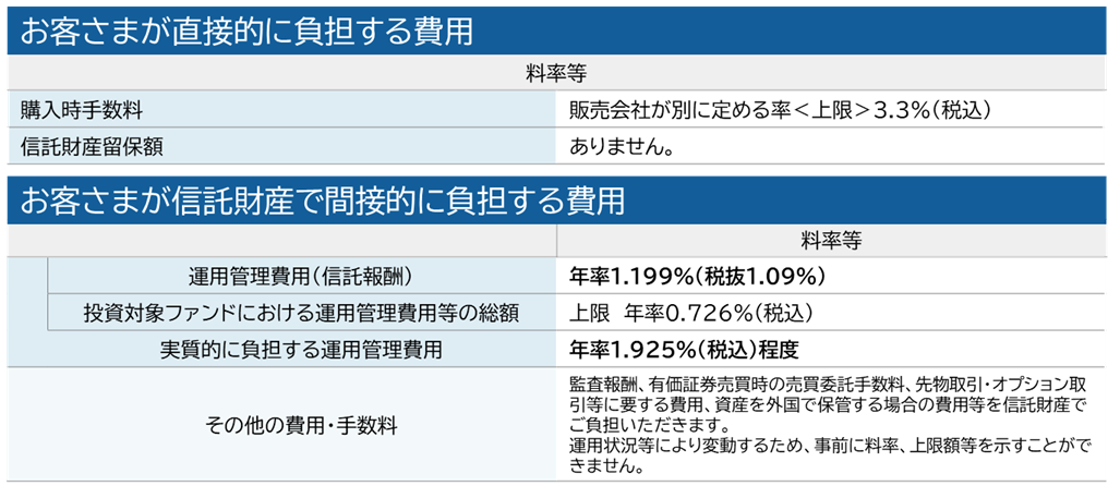 ※手数料等の合計額については、保有期間等に応じて異なりますので、表示することができません。また、上場不動産投資信託は市場価格により取引されており、費用を表示することができません。