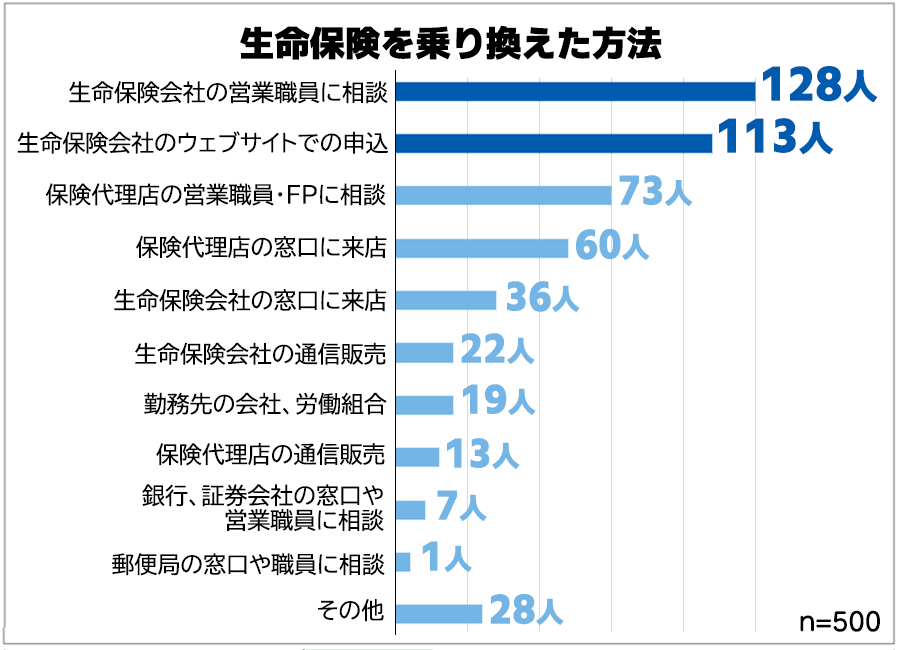 保険を乗り換えた方法についての答えでは「生命保険会社の営業職員に相談」が最も多かったのですが、これでは他社で良い保険があっても知ることができません。