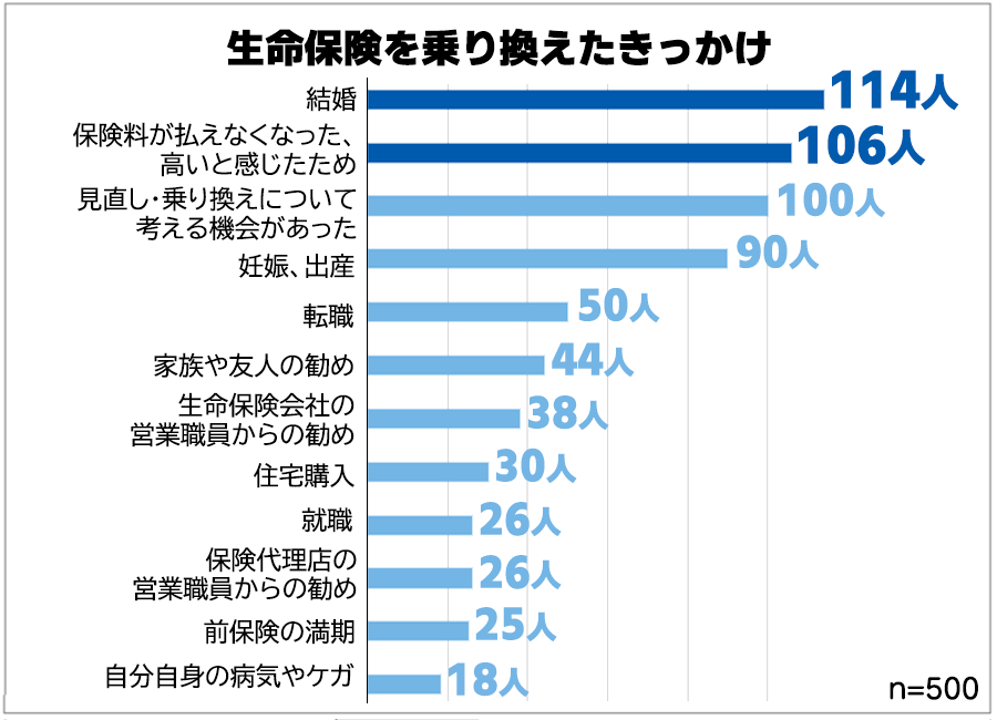そこで、実際に保険を乗り換えた人の意見を参考に、見直しするタイミング、理由などについて考えてみませんか?