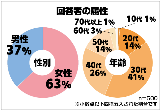 今回、男女500人の方に「保険の乗り換えについてのアンケート(自社調べ)」にご協力いただきました。性別と年代の割合は以下の通りです。