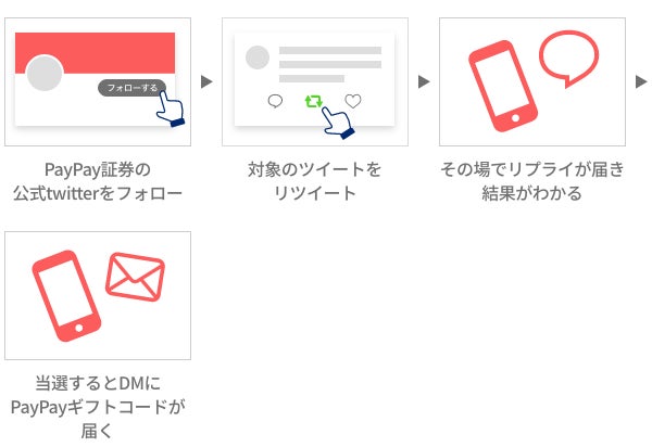 PayPay証券公式Twitterをフォローし、キャンペーン応募用ツイートをリツートすることが参加条件です。