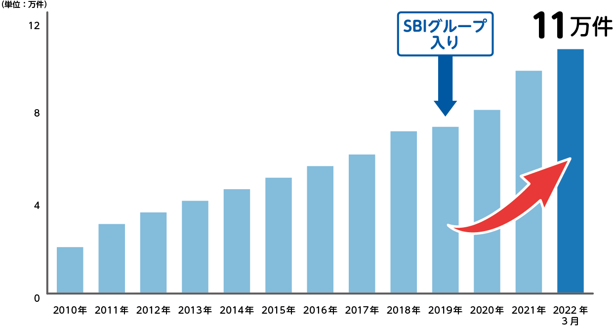 また、当社は、2019年6月にSBIグループの一員となり、当社が強みとしてきたペットショップチャネル、ブリーダーチャネル、犬猫譲渡チャネルに加え、WEBダイレクトチャネルのさらなる強化、SBIグループが掲げる地方創生事業に則した新しい代理店チャネルの開拓など、SBIグループの総合力、グループ各社のシナジー効果を活用し成長を加速させてまいりました。その結果、グループ入り後の2020年11月には9万件、2021年7月には10万件を突破し、このたび11万件を突破することとなりました。これはひとえにお客さま、代理店の皆さまのご支援とご愛顧の賜物と、深く感謝しております。