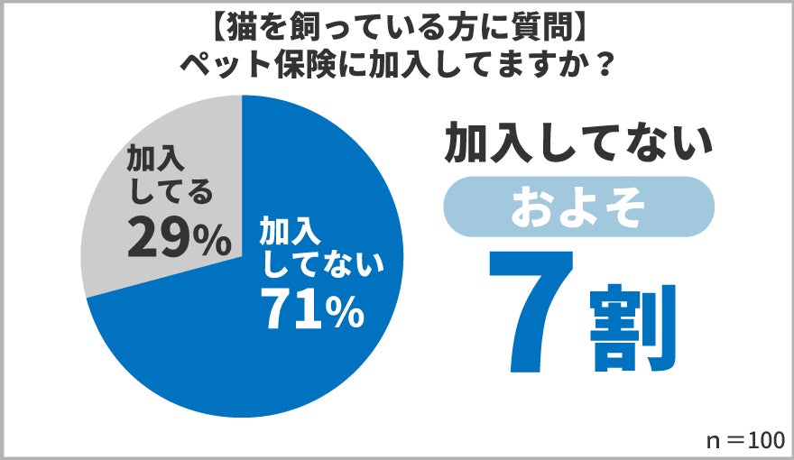 猫を飼っている方にも男女100名に「ペット保険に加入しているか?」質問したところ、猫を飼っている方のペット保険加入率は3割切っていました。