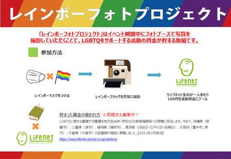 アジア最大級のLGBTQ関連イベントであり「“性”と“生”の多様性」を祝福する祭典「東京レインボープライド2022」が、3年ぶりに代々木公園および周辺にてオフラインで開催されます。本イベントのライフネット生命のブースでは、「レインボーフォトプロジェクト」を実施します。本プロジェクトは、ブース内で写真撮影をしていただいたお客さま一人あたり100円を当社が積み立て、その資金を元にLGBTQに関する児童書を購入し、購入した書籍を全国各地の図書館や学校に寄贈する活動です。また、今回はコロナ禍での開催ということもあり、ブース来訪者にレインボー柄のマスクを配布する活動も行います。