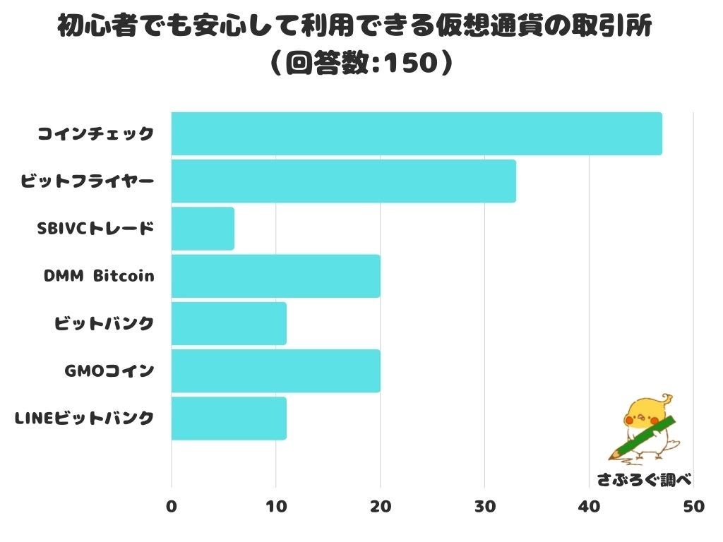 初心者でも安心して利用できる仮想通貨の取引所をアンケートにて調査したところ、1位は「コインチェック」でした。