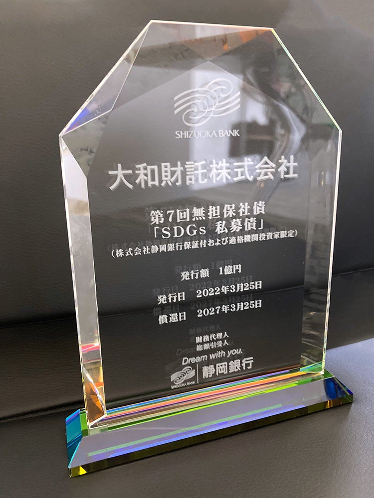 収益不動産を活用した資産運用コンサルティング事業を展開する大和財託株式会社(本社:東京都渋谷区/大阪府大阪市 代表取締役CEO:藤原正明、以下「当社」)は、令和4年3月25日に、株式会社静岡銀行(本店:静岡県静岡市 以下「静岡銀行」)を財務代理人及び引受人として無担保社債を発行しました。