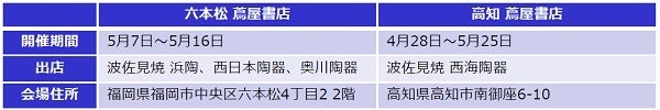 オンライン陶器市の開催期間にあわせて、福岡市および高知市の蔦屋書店にてリアル催事を実施いたします。