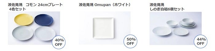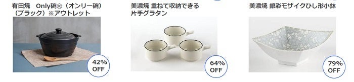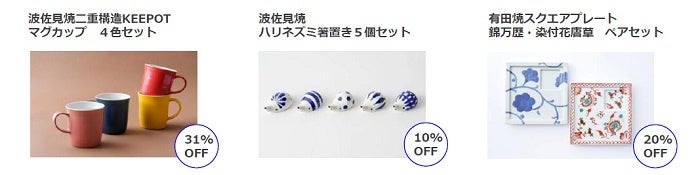 本取組みは、全国の焼き物産地で陶器市が開催されるゴールデンウィーク期間にあわせて、オンライン上での販路拡大支援を行うものです。3年連続での開催となる今回のオンライン陶器市は、波佐見焼(長崎)、有田焼(佐賀)、美濃焼(岐阜)の3産地の陶器を、過去最多となる600点以上取り揃えます。数量限定の特価商品やアウトレット商品、送料無料の商品など、陶器市らしいお買い得商品が充実しており、コロナ禍の影響で産地まで足を運べない方にもスマホやパソコンを通じて気軽にご購入いただけます。