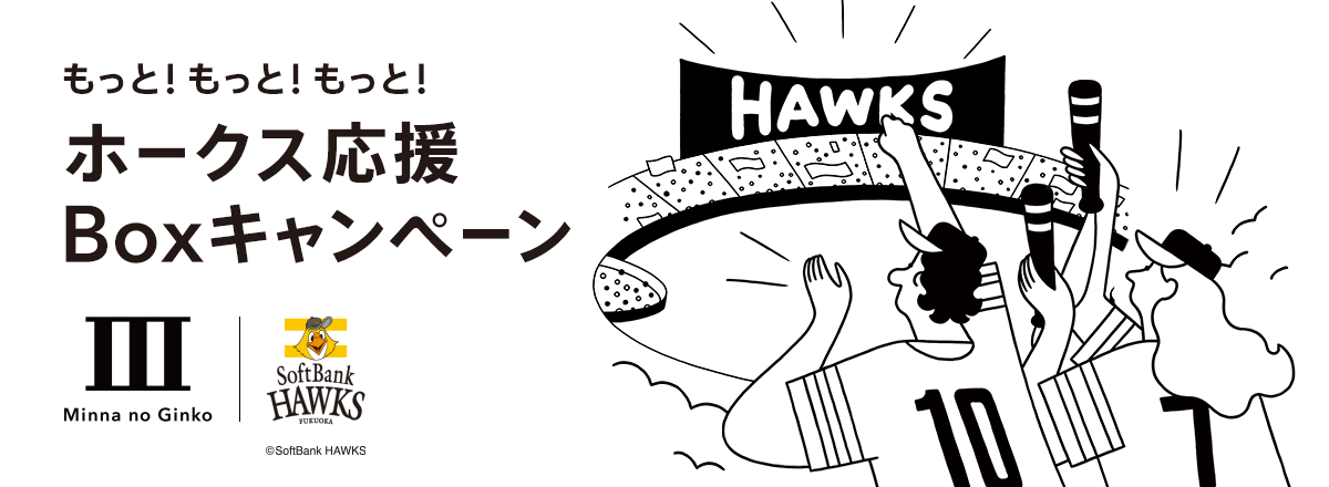 株式会社みんなの銀行(取締役頭取 永吉 健一、以下「みんなの銀行」)は、福岡ソフトバンクホークス株式会社(代表取締役社長 後藤 芳光、以下「福岡ソフトバンクホークス」)の2022年度オフィシャルスポンサーとして2022年4月27日から2022年6月30日の間、『もっと!もっと!もっと!ホークス応援Boxキャンペーン』を実施します。