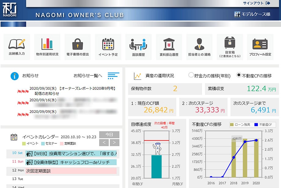 和不動産には、N-RICOSと連動したオーナー様専用サイト【NAGOMI OWNER’S CLUB】があります。