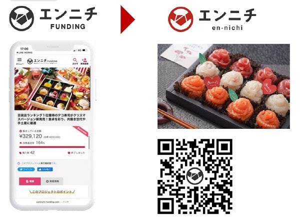 福岡県久留米市にあるボーテックス社は、2021年のクリスマスシーズンに「クリスマスデコ寿司」のプロモーションをエンニチ FUNDINGで実施するために必要なパッケージデザインや原稿制作について、本ファンドを活用。現在は、 オンラインストア エンニチにて常設販売中。