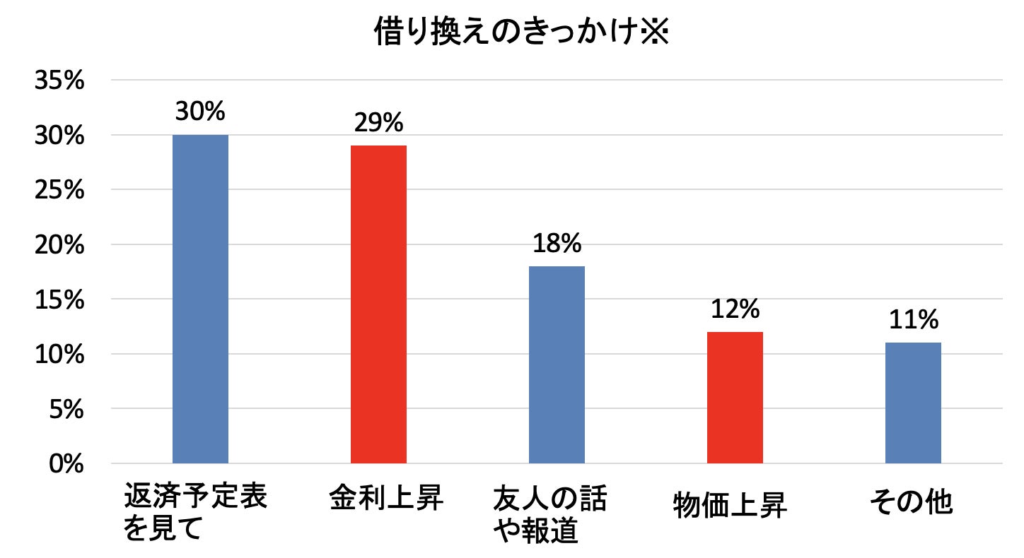 ※ モゲチェック借り換え申し込みユーザー(4/1〜4/30)1,297名を対象。 「住宅ローン借り換えを検討したきっかけはどれですか?」に対して複数選択アンケートを実施。